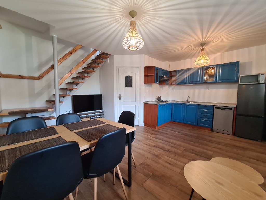 Dieses gemütliche gemauerte Haus bietet komfortable Bedingungen für 5 Personen. Es verfügt über zwei Schlafzimmer – eines mit einem Doppelbett und das andere mit zwei Betten, einem Doppel- und einem Einzelbett, sowie ein Wohnzimmer mit einer voll ausgestatteten Küche (Kühlschrank, Geschirrspüler, Mikrowelle, Gasherd, Essgeschirr), ein Badezimmer mit Dusche im Erdgeschoss und eine Toilette im Obergeschoss. Ein kostenloser Parkplatz für 1 Auto steht Ihnen auf dem Grundstück zur Verfügung.
